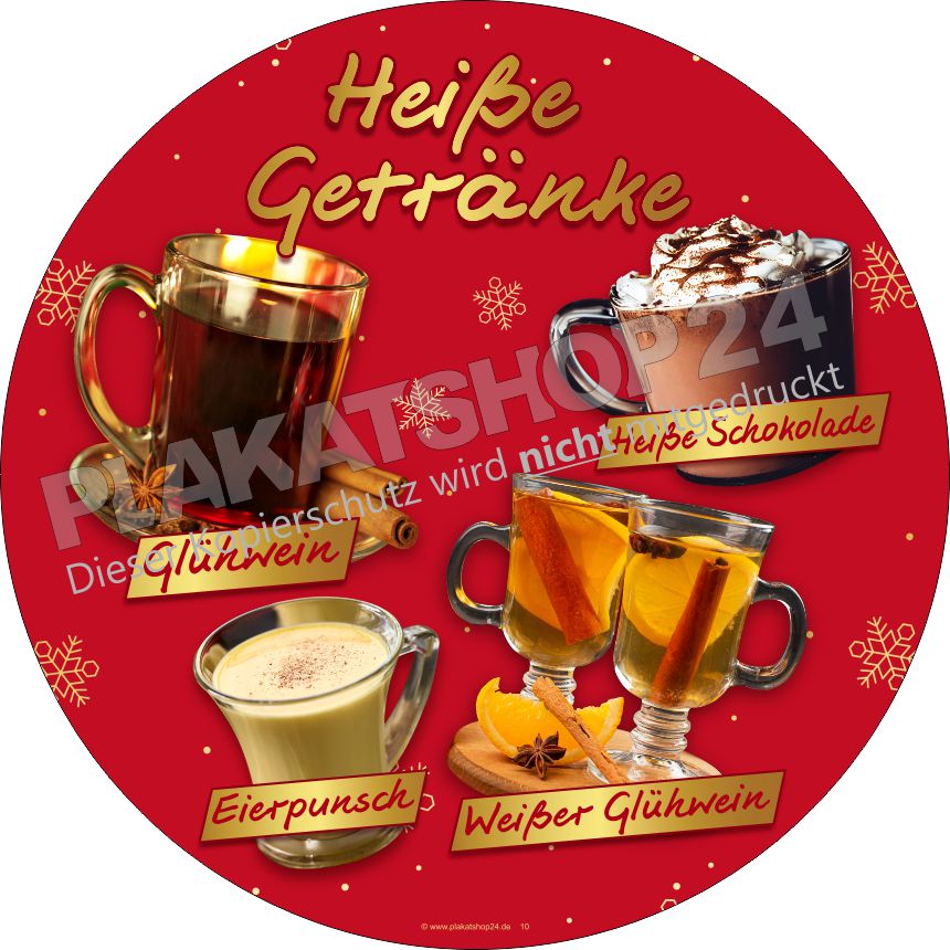Aufkleber mit Werbung für heiße Getränke (Glühwein, heisse Schokolade, Eierpunsch, weißer Glühwein)