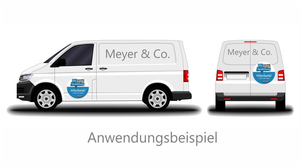 Attraktive Rekrutierung leicht gemacht!Sie sind auf der Suche nach neuen Mitarbeitern? Mit unserem hochwertigen Aufkleber „Mitarbeiter gesucht“ ziehen Sie die richtigen Talente direkt an! Unsere runden Klebefolien sind in den Größen 30 cm, 42 cm und 61 cm erhältlich und einzigartig gestaltet, um die Sichtbarkeit Ihrer Stellenausschreibung zu maximieren.Wetterfest, UV-stabil und vielseitig einsetzbarEgal, ob in Ihrem Schaufenster, an glatten Wänden oder sogar auf Fahrzeugen – unsere Aufkleber sind der perfekte Blickfang für alle, die nach neuen Herausforderungen suchen. Dank der wetterfesten und UV-stabilen Eigenschaften bleiben die Farben auch bei wechselhaftem Wetter und direkter Sonneneinstrahlung lebendig und ansprechend.Einfache HandhabungDie Anwendung ist kinderleicht: Die Aufkleber lassen sich problemlos selbst anbringen und sind ebenso einfach wieder zu entfernen, ohne Rückstände zu hinterlassen. Das bedeutet für Sie: Flexibilität und Anpassungsfähigkeit, wann immer Sie sie benötigen!Individuelle GestaltungNutzen Sie die Möglichkeit, Ihre Marke zu präsentieren! Auf Wunsch können wir Ihr Logo kostenfrei in den Aufkleber integrieren – ein zusätzlicher Pluspunkt, um die Aufmerksamkeit potenzieller Mitarbeiter auf Ihr Unternehmen zu lenken.Günstig und schnellProfitieren Sie von kurzen Lieferzeiten und einem ausgezeichneten Preis-Leistungs-Verhältnis. Unsere Aufkleber sind eine kosteneffiziente Lösung, um schnell auf Ihre offenen Stellen aufmerksam zu machen und den perfekten Kandidaten zu finden.Unser Tipp: Durch temporäre Verklebung auf Fahrzeugen sind Sie auch mobil im Recruiting und erreichen somit eine noch größere Zielgruppe!Setzen Sie auf Sichtbarkeit und Kreativität! Bestellen Sie jetzt Ihre „Mitarbeiter gesucht“-Aufkleber und bringen Sie frischen Wind in Ihre Rekrutierungsmaßnahmen!