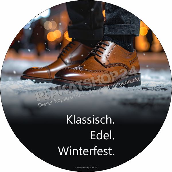Mit dieser runden Klebefolie präsentierst du deine klassischen Herrenschuhe winterfest und elegant. Ideal für Schaufenster, Türen oder andere glatte Flächen – maximale Wirkung bei minimalem Aufwand.