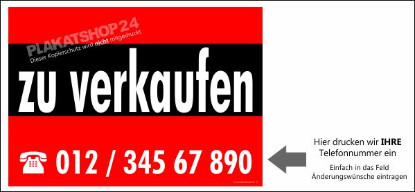 Für eine effektive Bewerbung Ihrer Immobilie, die sich über weite Strecken abhebt, ist unser rot-schwarzes "Zu verkaufen"-Plakat im Querformat die ideale Lösung. Die Kombination aus starkem Design und individueller Kontaktmöglichkeit garantiert maximale Reichweite.