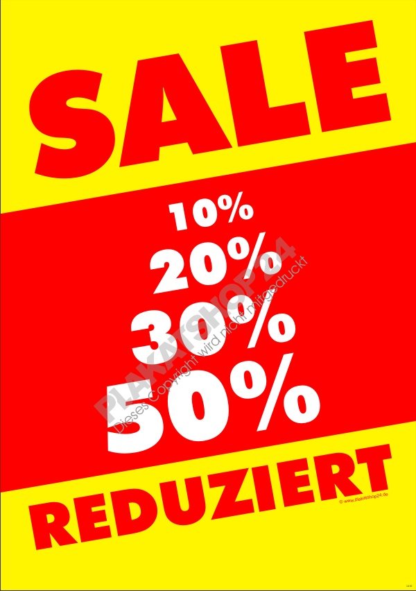 Produktinformationen "Werbeplakat "SALE – REDUZIERT" (10% bis 50%) – Wetterfeste Rabatt-Werbung für Ihr Geschäft"