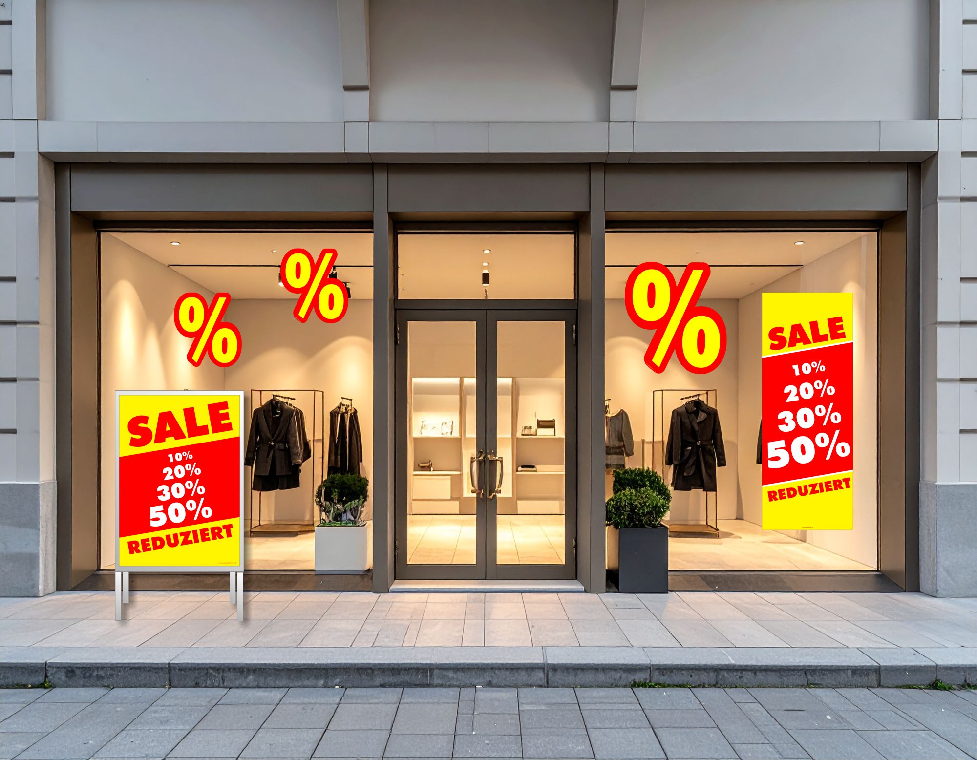 Nutzen Sie jetzt die verkaufsstarken Werbemittel von Plakatshop24, um Ihre Lagerbestände durch gezielte Kundenansprache effizient zu leeren, Ihre Umsätze nachhaltig zu steigern und somit schnellstmöglich wertvollen Platz für neue Kollektionen sowie aktuelle Trends in Ihren Verkaufsräumen zu schaffen! ✨