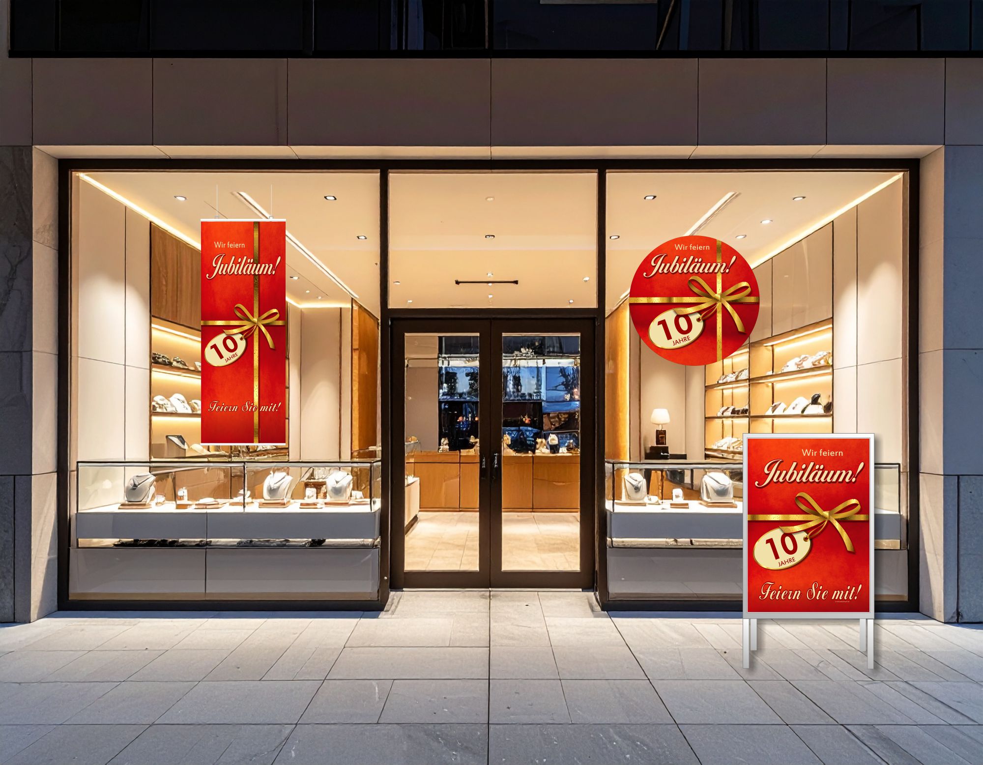 🚀 Kurze Lieferzeiten, damit Ihre Werbung pünktlich zum Jubiläum hängt.