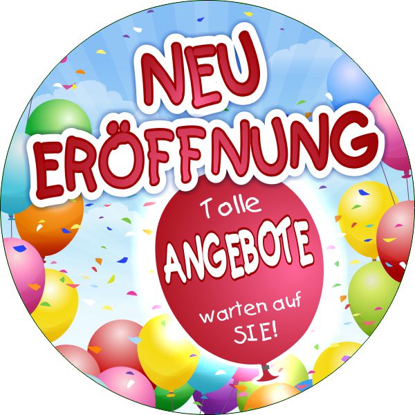 Bei einer anstehenden Neueröffnung gibt es für Sie sicherlich alle Hände voll zu tun. Deshalb möchten wir Ihnen jede Menge Arbeit im Bereich Werbung und Dekoration abnehmen und bieten Ihnen bereits fertig gestaltete Produkte zur Eröffnung an. Dieses Werbematerial ist mit auffälligen und einladenden Motiven gestaltet und wird durch treffsichere Textfelder ergänzt. Wir bieten Ihnen aber auch die Möglichkeit, noch individuelle Änderungen daran vorzunehmen. Wenn Sie uns das Logo Ihres neuen Unternehmens senden, dann fügen wir es für Sie kostenlos in die Werbemittel ein. Ebenso führen wir gerne Änderungen an der Dekoration und Werbung zur Neueröffnung durch, die Sie uns beim Bestellvorgang mitteilen. Obwohl wir alle Artikel erst nach Eingang Ihrer Bestellung produzieren, können Sie mit kurzen Lieferzeiten rechnen. Nutzen Sie unseren umfassenden Service und statten Sie sich bei uns mit Werbematerial und Dekoration für die Eröffnung Ihres neuen Geschäfts aus!
